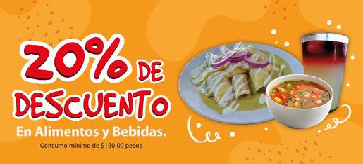 ¡Bienvenido! Aprovecha un descuento del 20% en Alimentos y Bebidas descargando nuestro cupón virtual.